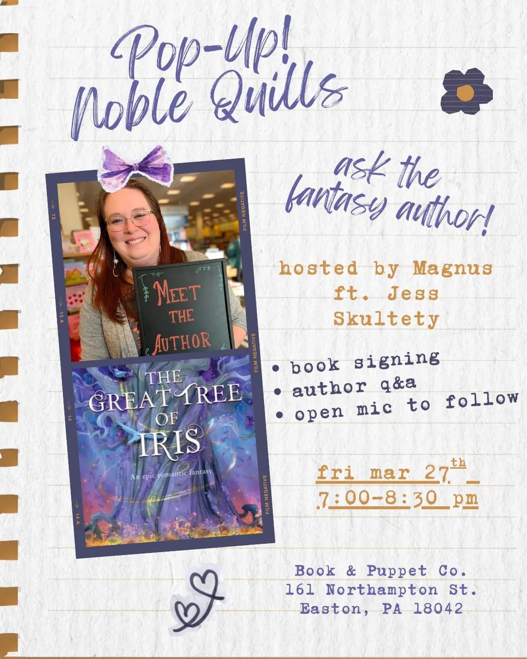 Come say hi, and let’s talk fantasy books! I’ll be signing copies of The Great Tree of Iris, and I’ll have stickers, bookmarks, and character art to give away.